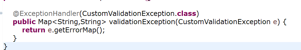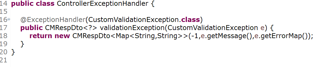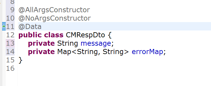 우리는 message와 errorMap 둘 다를 받고 싶은 것이기 때문에 dto는 이쯤 해두고 ControllerExceptionHandler 클래스로 이동합니다.