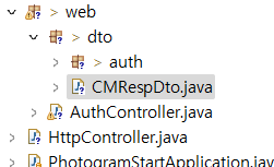 이런식으로 web - dto내부에 auth 내부가 아닌 곳에 CMRespDto 클래스를 생성해보겠습니다.