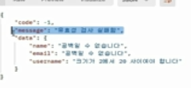 그럼 CMRespDto타입의 함수를 return할 때에도 메세지와 errorMap으로 반환 가능합니다.