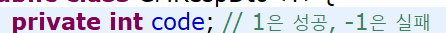 메세지도 같이 띄우고 싶은데 그러지 못하기 때문에 dto에 클래스를 하나 만듦으로써 공통 응답 처리를 한 번 해보도록 하겠습니다.