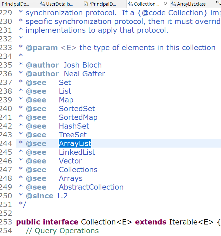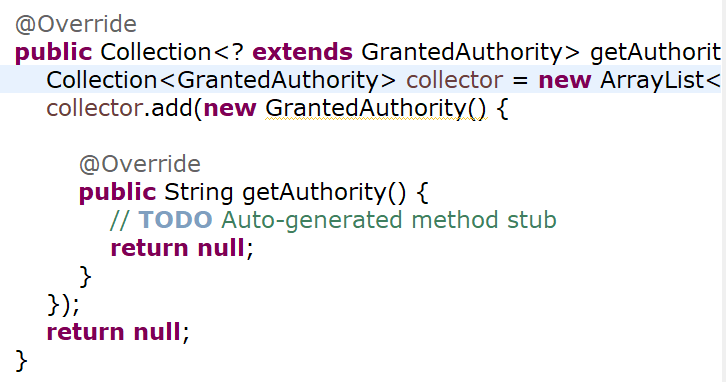 Collection의 타입은 GrantedAuthority이고 ceollector에 ArrayList타입으로 선언합니다.