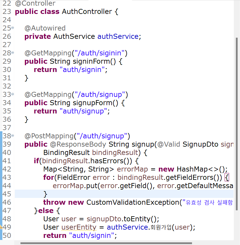 userEntity에 userRepository에서 찾은 username을 담고 if,else문으로 분기별 탐색을 진행합니다.