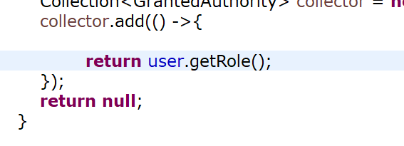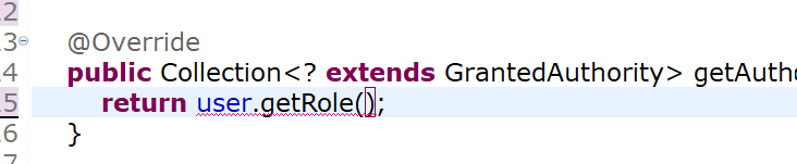 return user.getRole()하고 싶은데 오류가 납니다.