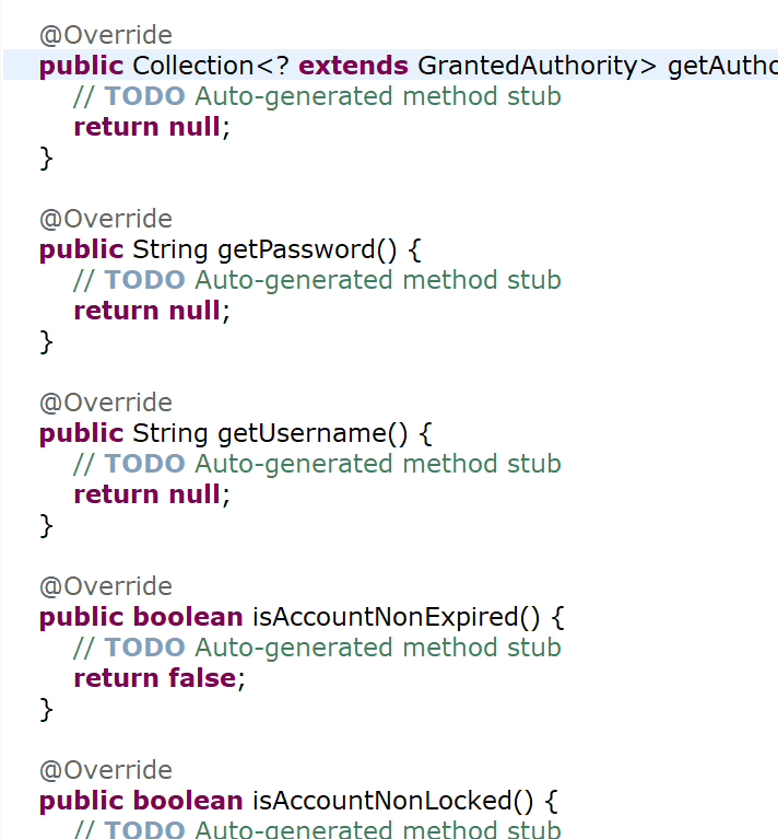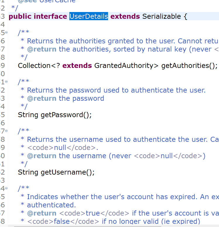 그럼 UserDetails가 가지고 있는 return타입을 모두 가져옵니다.
