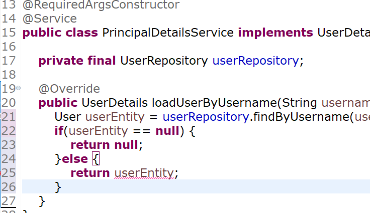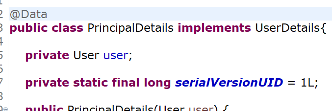 그 다음에 다시 PrincipalDetailsService로 돌아가서 찾아보겠습니다.