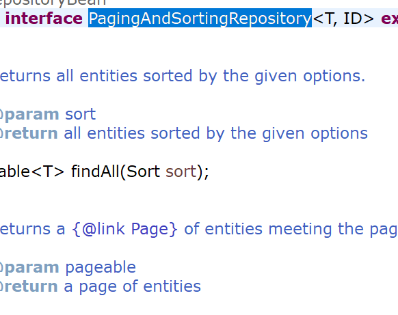 JpaRepository 안을 들여다보면 PagingAndSortingRepository가 있고 그 안을 또 보면