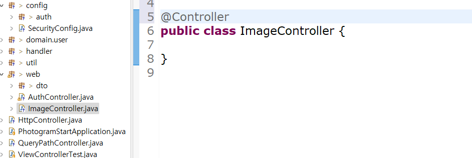 마찬가지로 클래스를 하나 더 만들건데, UserController라고 짓고 회원정보페이지를 들어갈 수 있는 함수를 만듭니다.