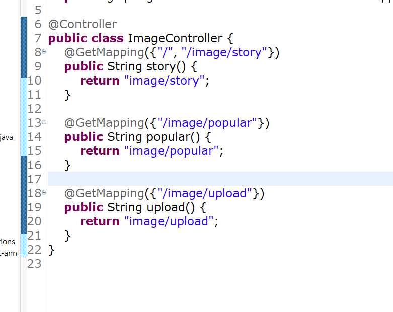 이미 프론트단은 거의 구현이 되어 있기 때문에 다음과 같이 만들어서 홈페이지와 인기페이지를 GetMapping으로 구현합니다.