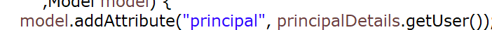 그리고 이렇게 model에 principal에 getUser를 넘기면 값을 전달받은 model에는 princpal이 key-value형태로 담기게 되고 계속해서 재사용 할 수 있게 됩니다.