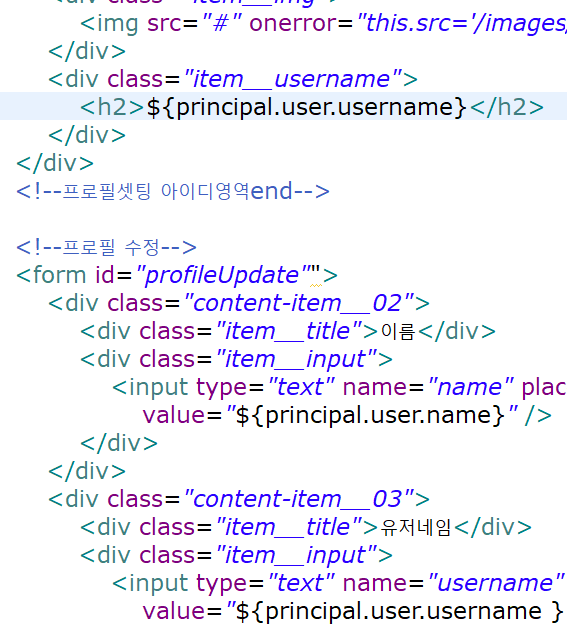그럼 이제 jsp의 모든 페이지에서 ${prinicpal}이렇게 적으면 principal에 접근이 가능합니다.