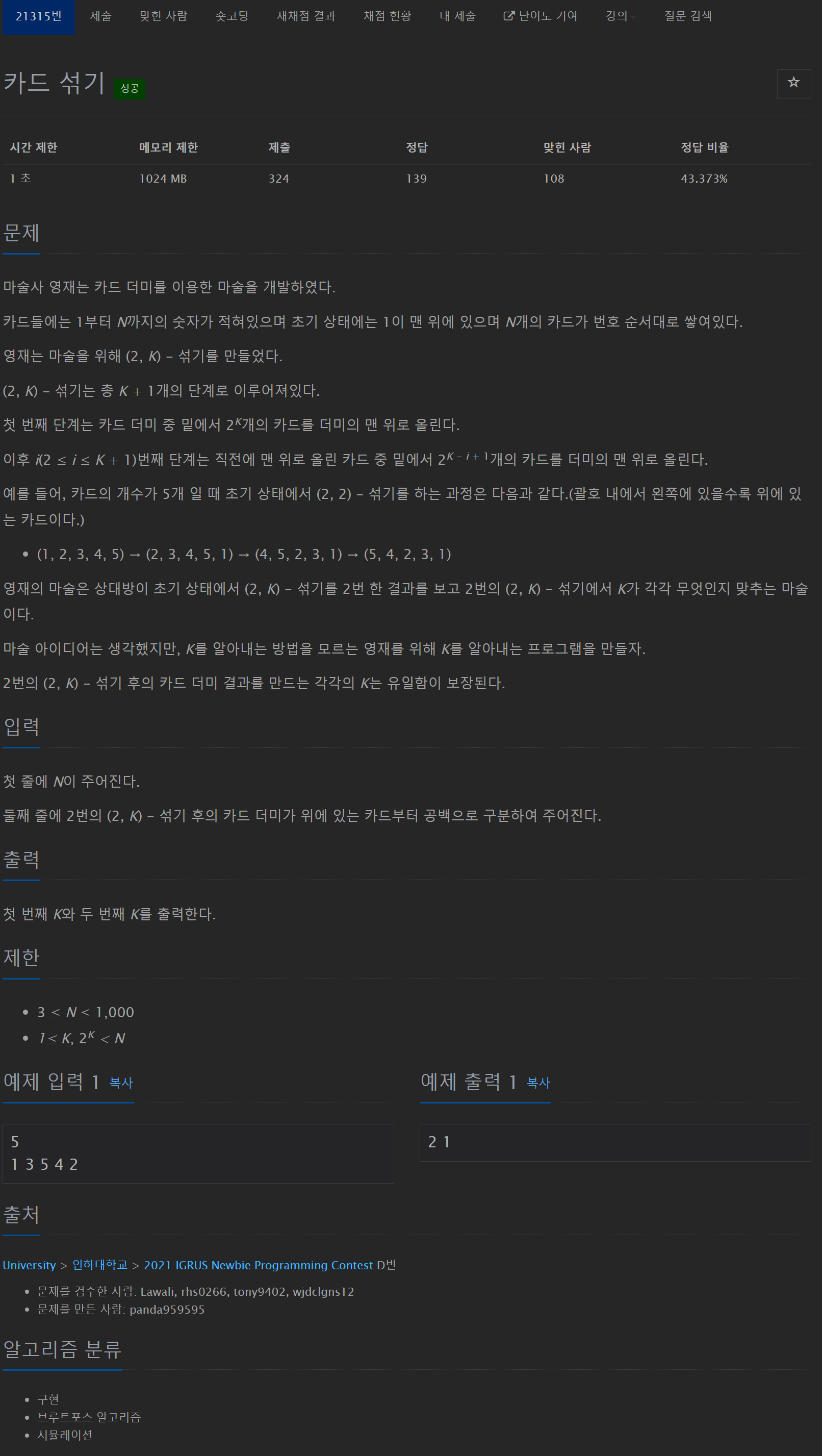 [BOJ - JAVA] 21315 - 카드 섞기 (브루트포스) 본문