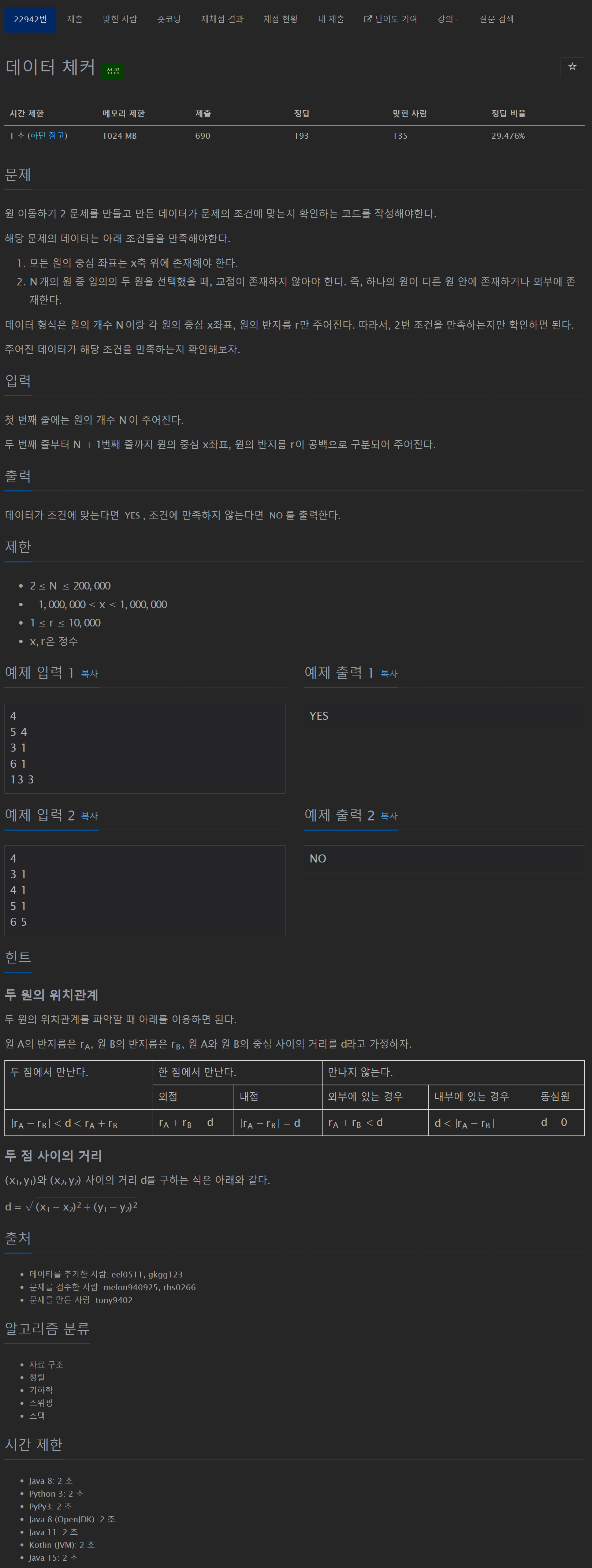 [BOJ - JAVA] 22942 - 데이터 체커(스택) 본문