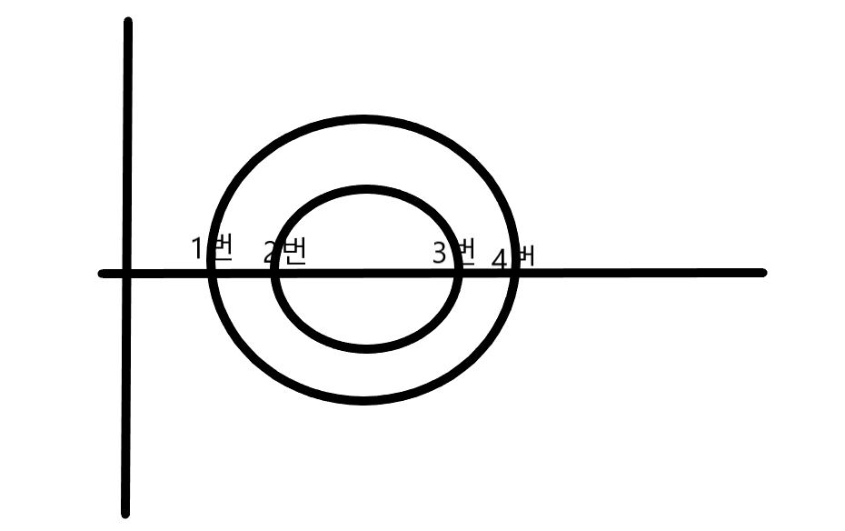 그럼 이건 원이 교점을 가지고 있다는걸 의미해요.