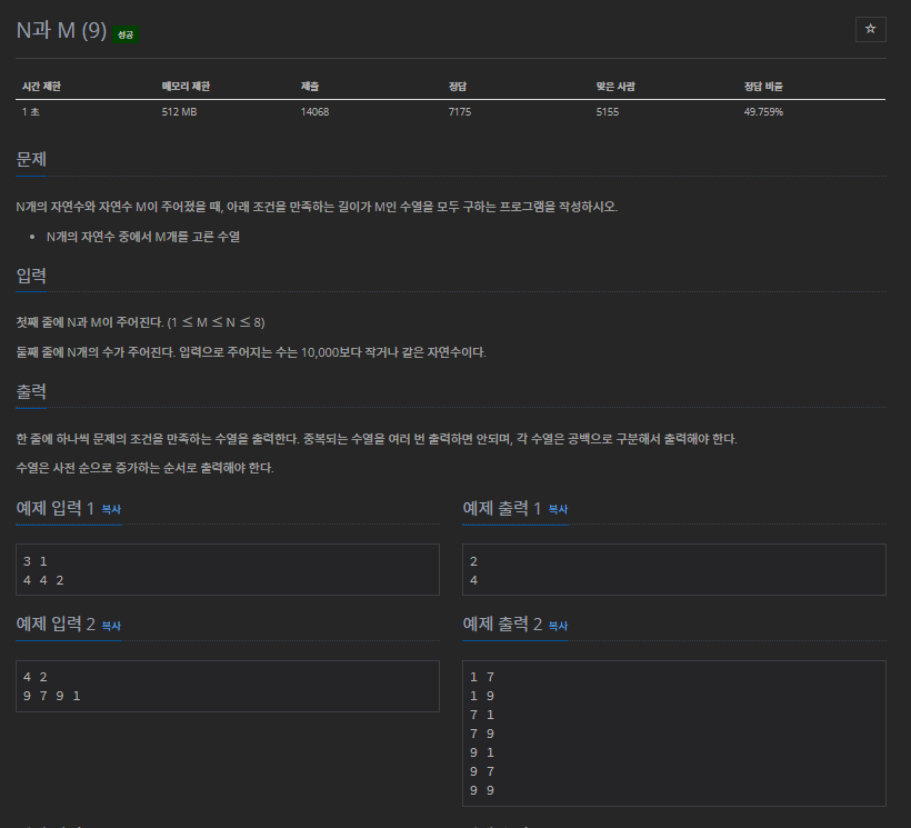 15663번: N과 M (9)
