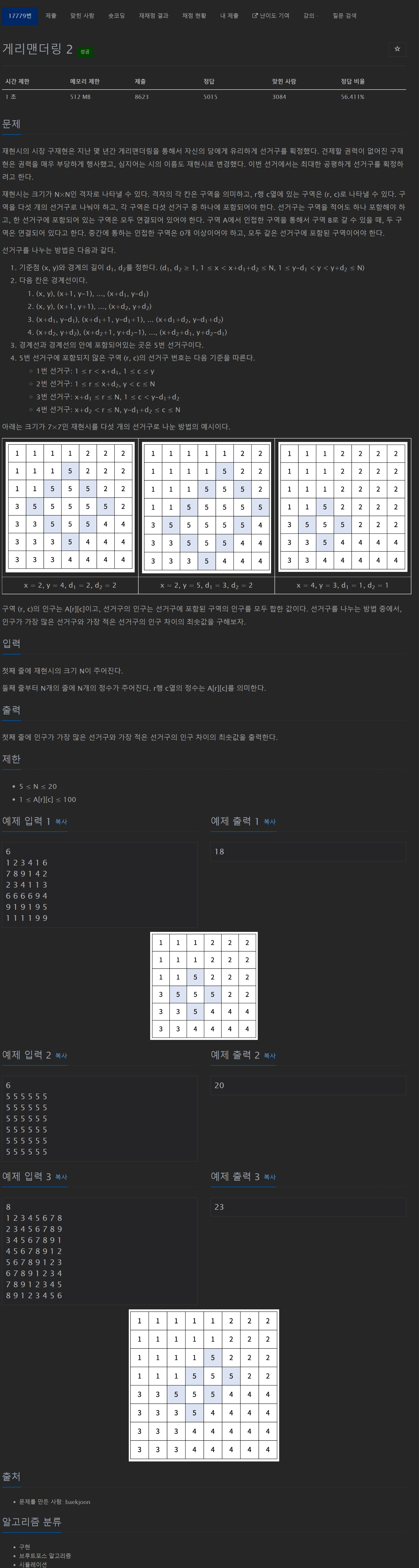 [BOJ - JAVA] 17779 - 게리맨더링 2 (BFS, 시뮬레이션, 코테기출) 본문