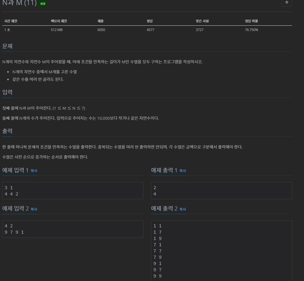 [BOJ - JAVA] 15665 - N과 M 11(백트래킹) 본문