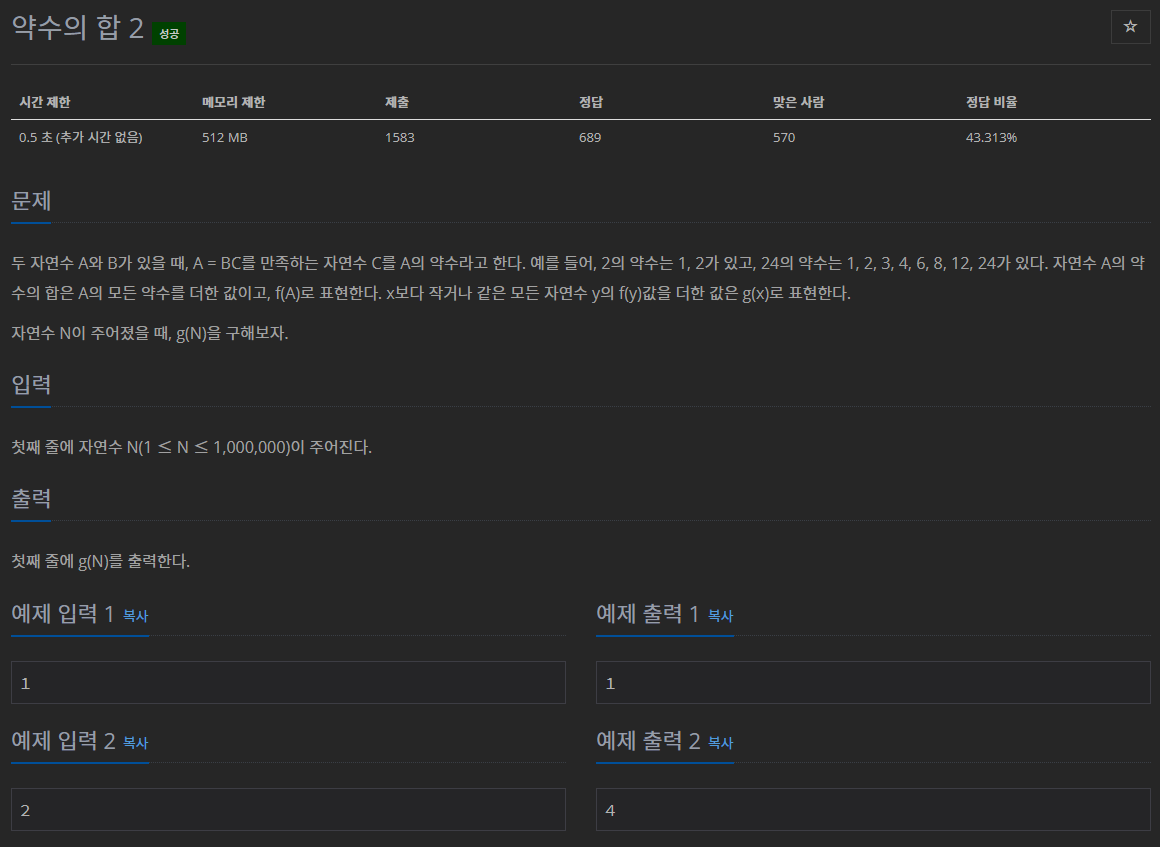 [BOJ - JAVA] 17427 - 약수의 합2 본문
