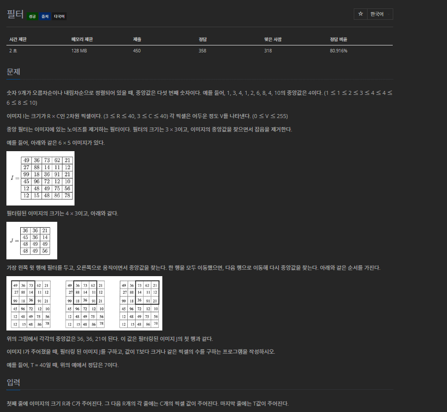 [BOJ - JAVA] 1895 - 필터(슬라이딩 윈도우) 본문
