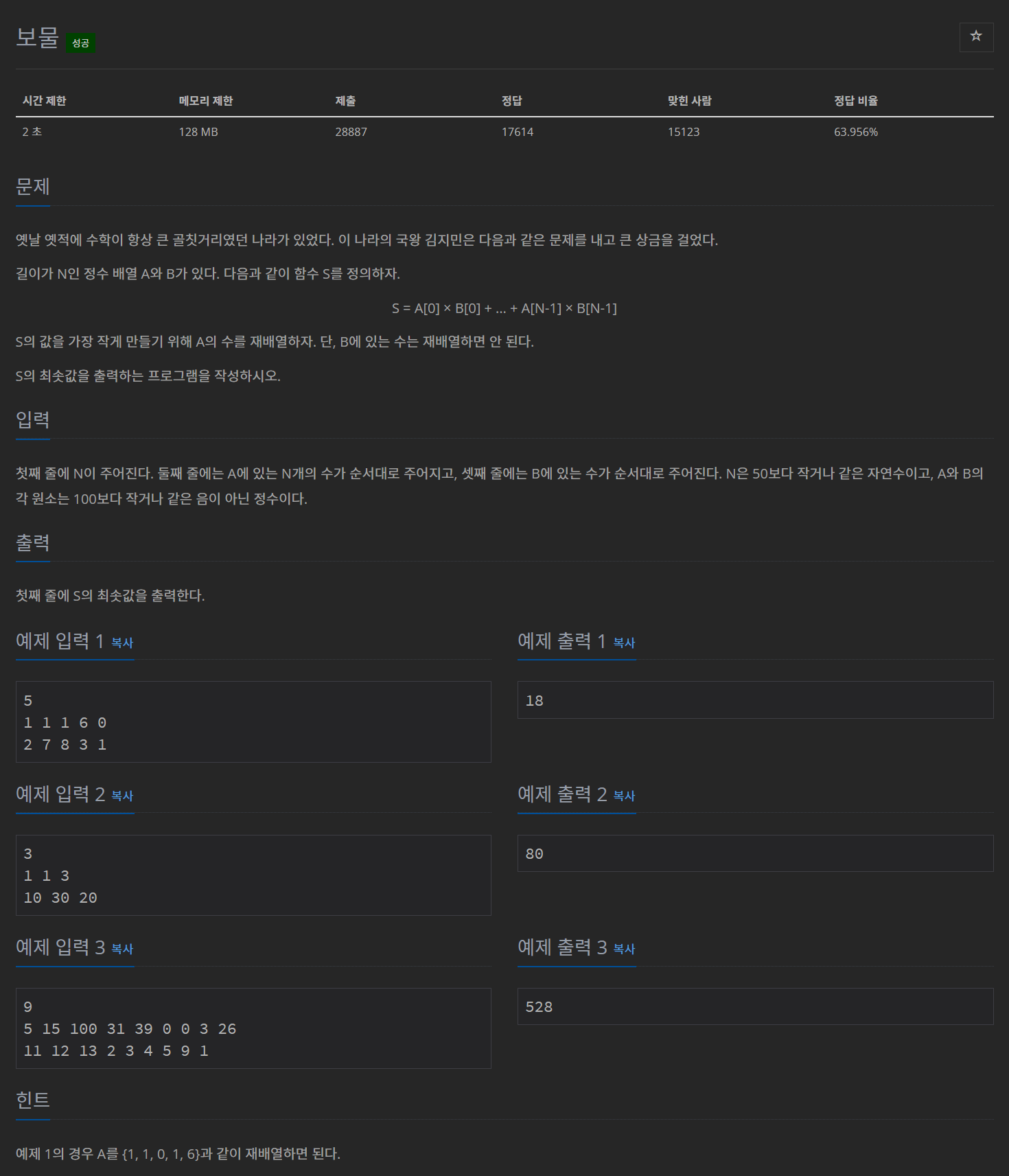 https://www.acmicpc.net/problem/1026